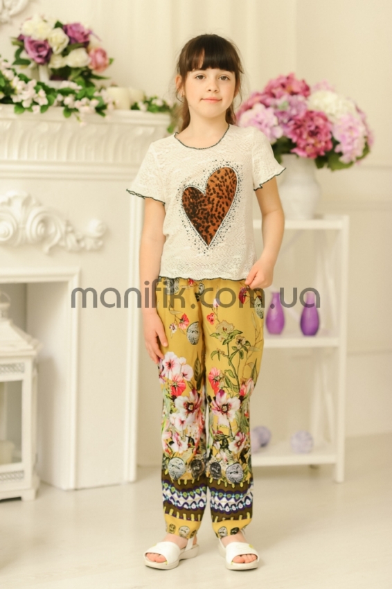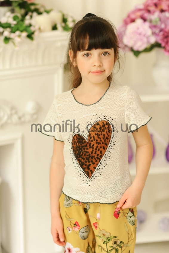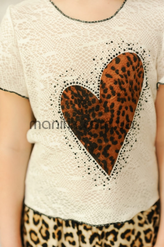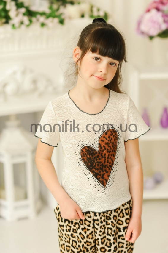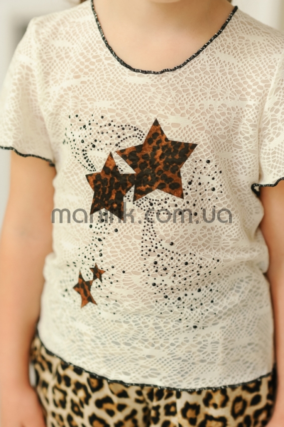 Наименование: Футболка «Гипюр», беж (сердце, звезды)