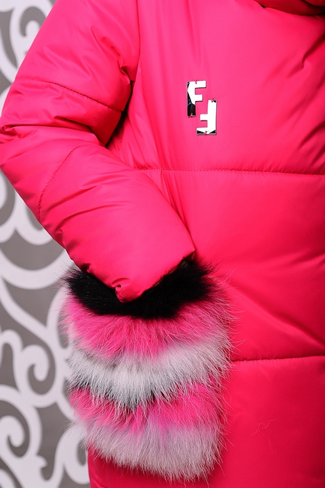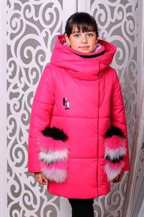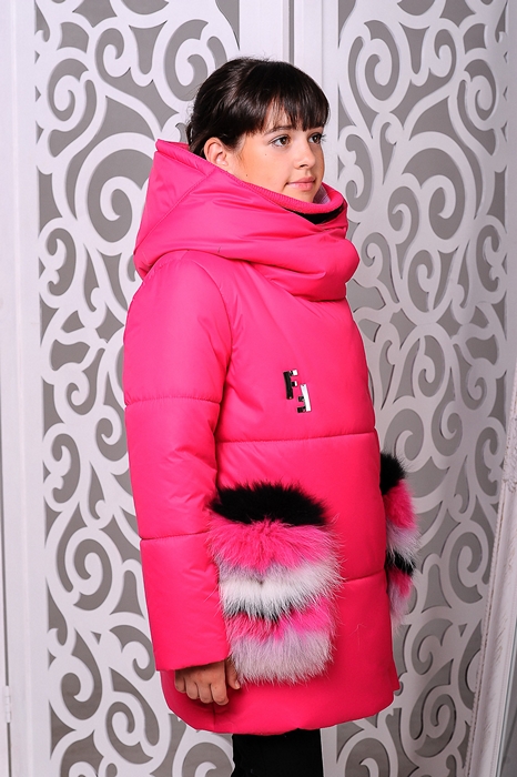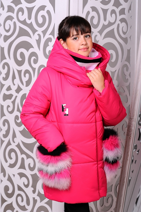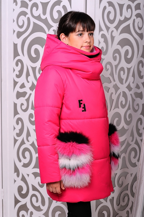 Особенности: вязаный хомут в комплекте, карманы — отстегиваются, на карманах натуральный мех, куртка застегивается на молнию и кнопки