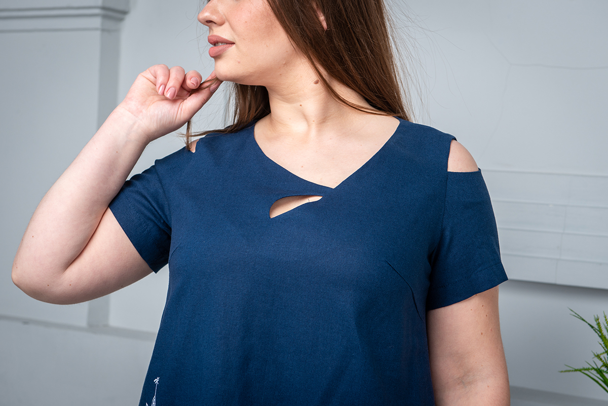 Наименование: Платье «Город», синее Производитель: LUCKY TRENCH (Украина) Размеры в наличии: 50,52,54,56,58 Материал: лен 95%, коттон 5% (материалы турецкого производства) 50р: 104 (ОГ); 86 (ОТ); 110 (ОБ); 100 (ДСП); / L РОЗНИЦА: 970 грн.