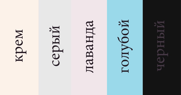 В наличии цвета: крем, серый, лаванда, голубой, черный